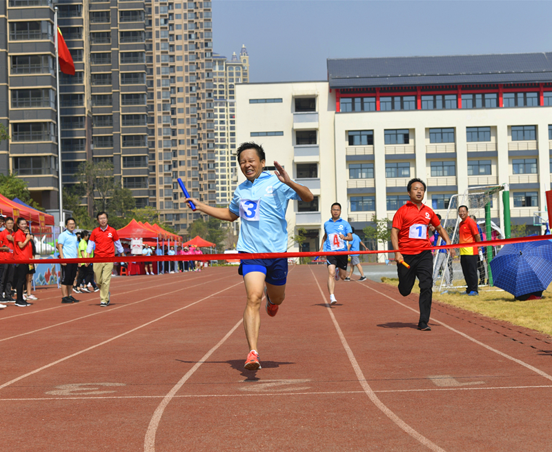 《向前沖!》(集團(tuán)辦公室 吳靄濤)圖片說明:2019年職工運動會上,接力比賽隊員正在全力沖刺終點。