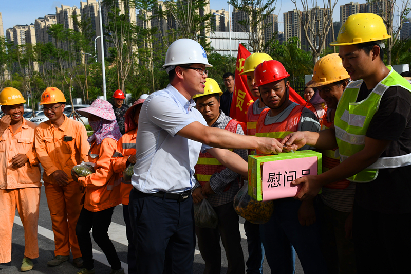 慰問凝聚真情和力量,眾志成城保復工復產(chǎn)。本場的“送清涼”活動拉開了集團黨委和工會2020年夏季重點項目“一線送清涼”活動的序幕,下一步,綠港集團將廣泛開展形式多樣、內(nèi)容豐富的送清涼活動,爭取為更多的項目特別是重點項目送去夏日的清涼和組織的關愛,幫助一線奮斗者清涼、安全度夏,助力項目建設安全有序進行。(榮鑫公司 蔣紹明/圖、文 林武東/圖)