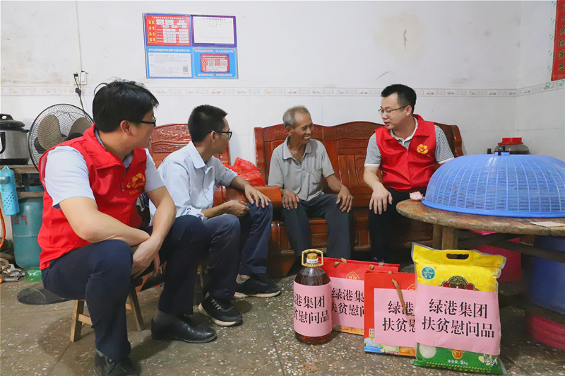 綠港集團黨委書記、董事長龔國強,黨委副書記、總經(jīng)理鄧?yán)^慧在貧困戶梁承營家開展慰問(王振霖 圖)