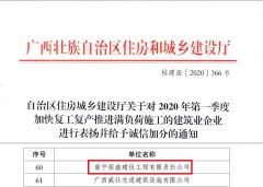 - 近日,廣西壯族自治區(qū)住房和城鄉(xiāng)建設(shè)廳發(fā)布《自治區(qū)住房城鄉(xiāng)建設(shè)廳關(guān)于對(duì)2020年第一季度加快復(fù)工復(fù)產(chǎn)推進(jìn)滿(mǎn)負(fù)荷施工的建筑業(yè)企業(yè)進(jìn)行表?yè)P(yáng)并給予誠(chéng)信加分的通知》,對(duì)2020年第一季度為自治區(qū)經(jīng)濟(jì)穩(wěn)增長(zhǎng)做出較多貢獻(xiàn)的建筑業(yè)企業(yè)進(jìn)行表?yè)P(yáng)并給予誠(chéng)信加分。綠港集團(tuán)下屬榮鑫公司獲得通報(bào)表?yè)P(yáng)和3分誠(chéng)信加分獎(jiǎng)勵(lì)。此次的通報(bào)表?yè)P(yáng),充分肯定了榮鑫公司疫情后復(fù)工復(fù)產(chǎn)取得的成效,也將進(jìn)一步提高榮鑫公司投標(biāo)工作及承攬業(yè)務(wù)的競(jìng)爭(zhēng)能力。